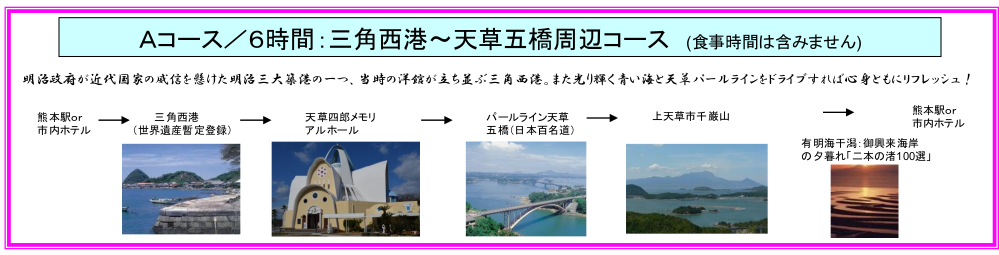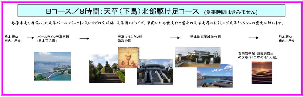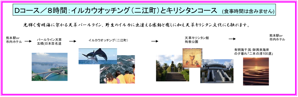 | 天草観光D(イルカ&キリシタン) | 8.5時間 |