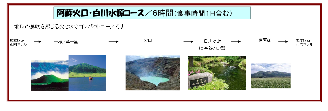 | 大阿蘇体感:火口・白川水源コース | 6時間 |
