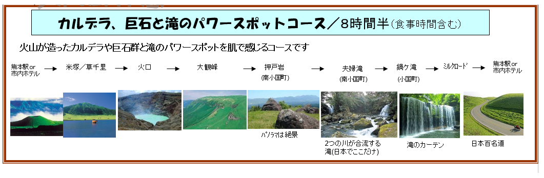 | 阿蘇のパワースポット:火口、巨石と滝の パワースポットコース | 8.5時間 |