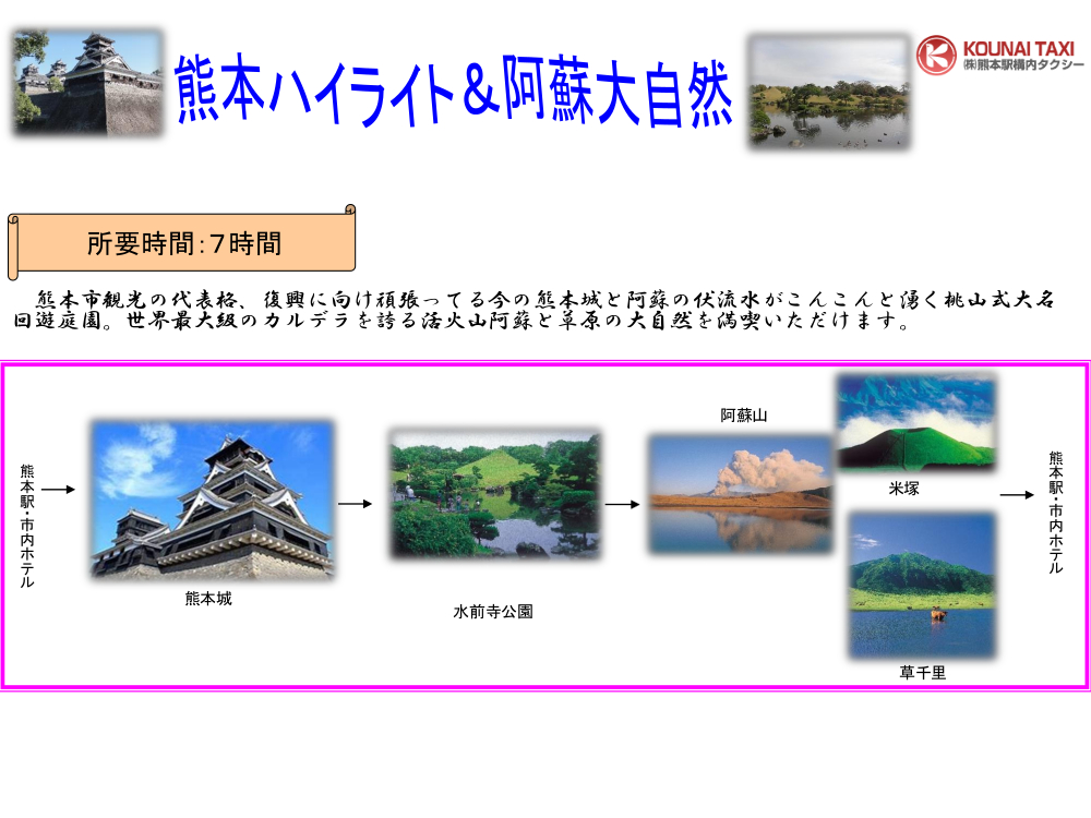 | 熊本ハイライト&阿蘇大自然 | 7時間 |