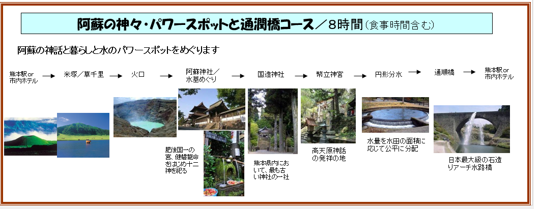 | 阿蘇のパワースポット:阿蘇の神々、パワースポットと通潤橋コース | 8時間 |