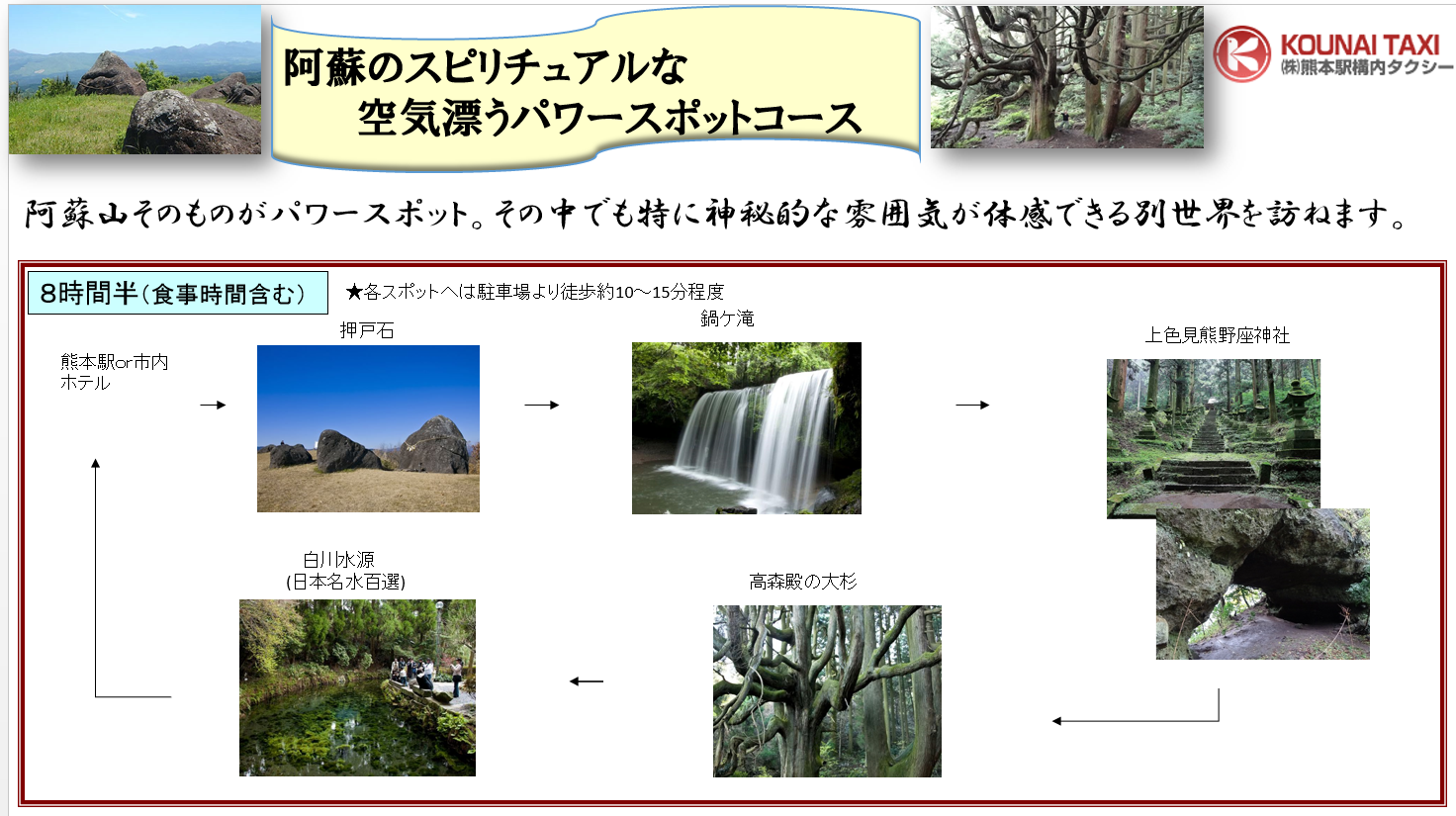 | 阿蘇のスピリチュアルな空気漂うパワースポットコース | 8.5時間 |