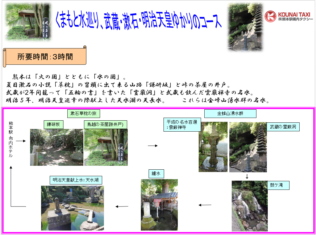| くまもと水巡り、武蔵・漱石・明治天皇ゆかりコース | 3時間 |