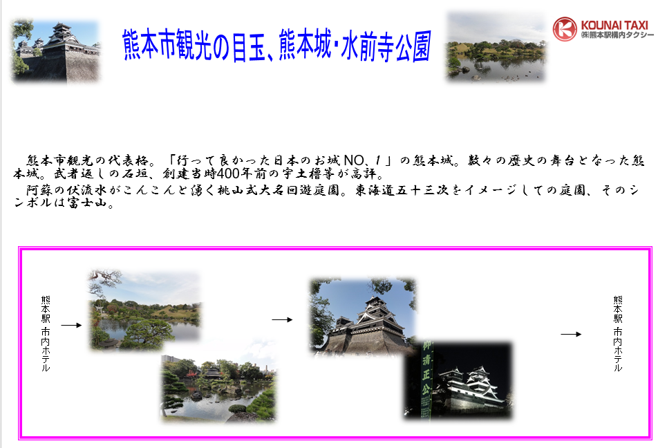 | 熊本市観光の目玉、熊本城・水前寺公園 | 3時間 |