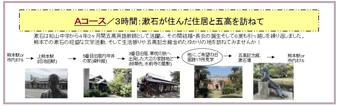| 夏目漱石の熊本散歩(Aコース:住居と五高) | 3時間 |