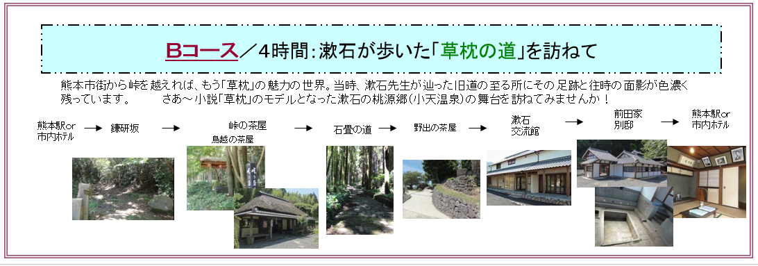 | 夏目漱石の熊本散歩(Bコース:草枕) | 4時間 |